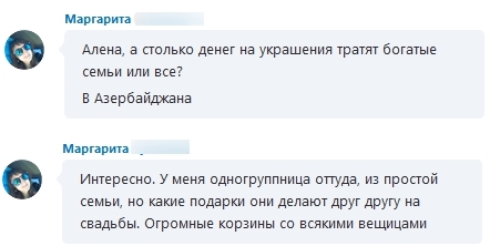 Это реальная карма, как нас сводит. Вообще как мы в один номер попали, это цирк. И даже если чекинимся на рейсах из разных стоек!! то в целом самолете каждый раз!! у нас опять места рядом. Это фантастикано я не об этом. Она русская, но живет в Азербайджане. Рассказала мне о тех традициях, что женщина там обязана носить украшения. Там это целый культ. Они (местные) меряются между собой и очень разбираются в этом: драгкамнях, драгметаллах и тратят на это огромные деньги. По другому там нельзя.