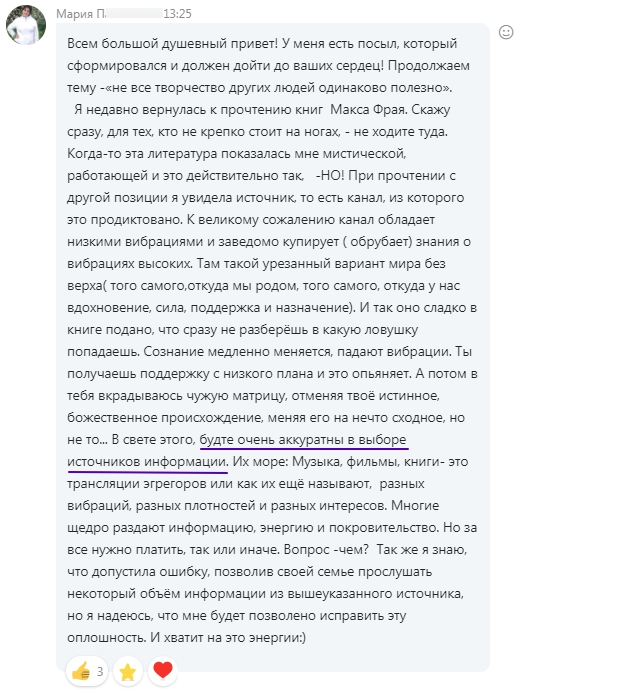 Чат. Будьте избирательны в выборе источников информации (пост участницы)