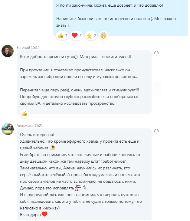 Этот Кабинет также отличался от "рабочей площадки", куда я обычно поднимаюсь познакомиться с новыми трансляторами, которые заходят в Канал (когда их надо про-вещать)Раньше я в этом вообще не разбиралась, когда читала "чужие книжки про Ангелов". Но свой опыт вообще другой. Я не понимала, как там все устроено.Сейчас я знаю, что у меня несколько Ангелов, знаю их роли и влияние.