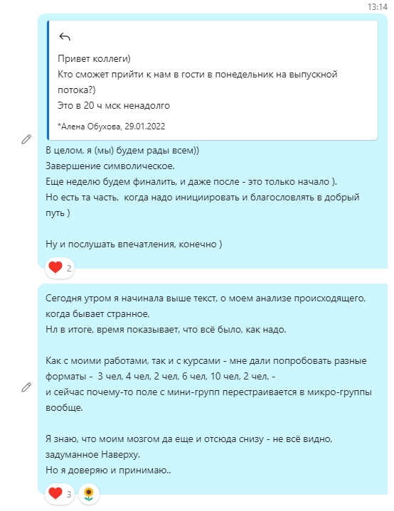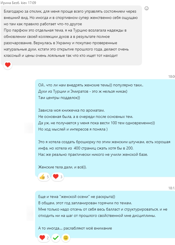 Сообщение Ирины резонирует с происходящим сейчас со мной.