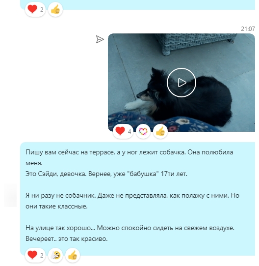 Она нам писала такие трогательные вещи, что из моих глаз сразу брызгали слёзы. Это невыносимо прекрасно