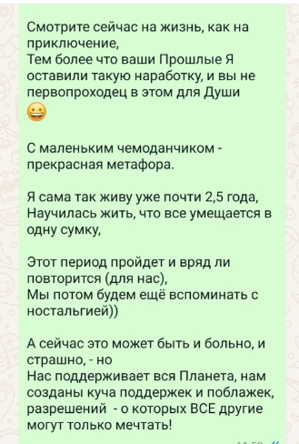 Я благодарила Небеса и всех Всевышних, - что у меня есть возможность совсем другого присутствия,