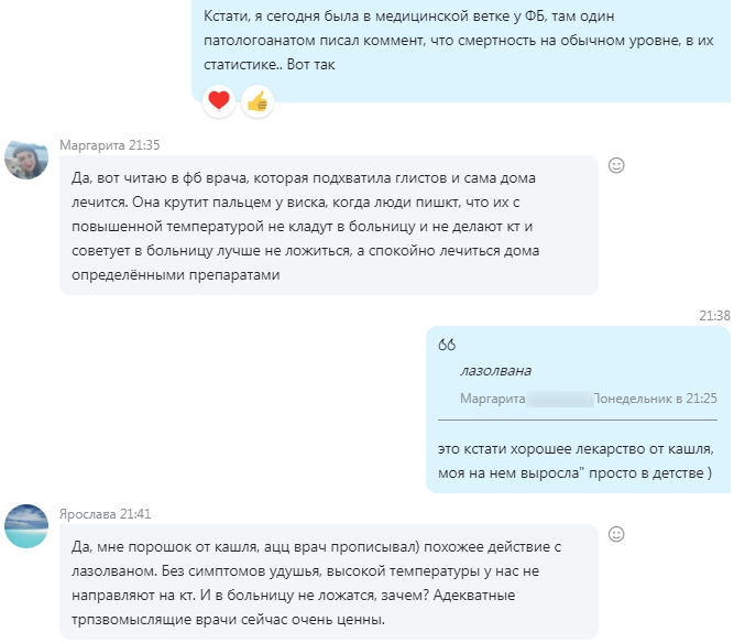 Алена Обухова: Миллионы людей температурят, кашляют и выздоравливают.