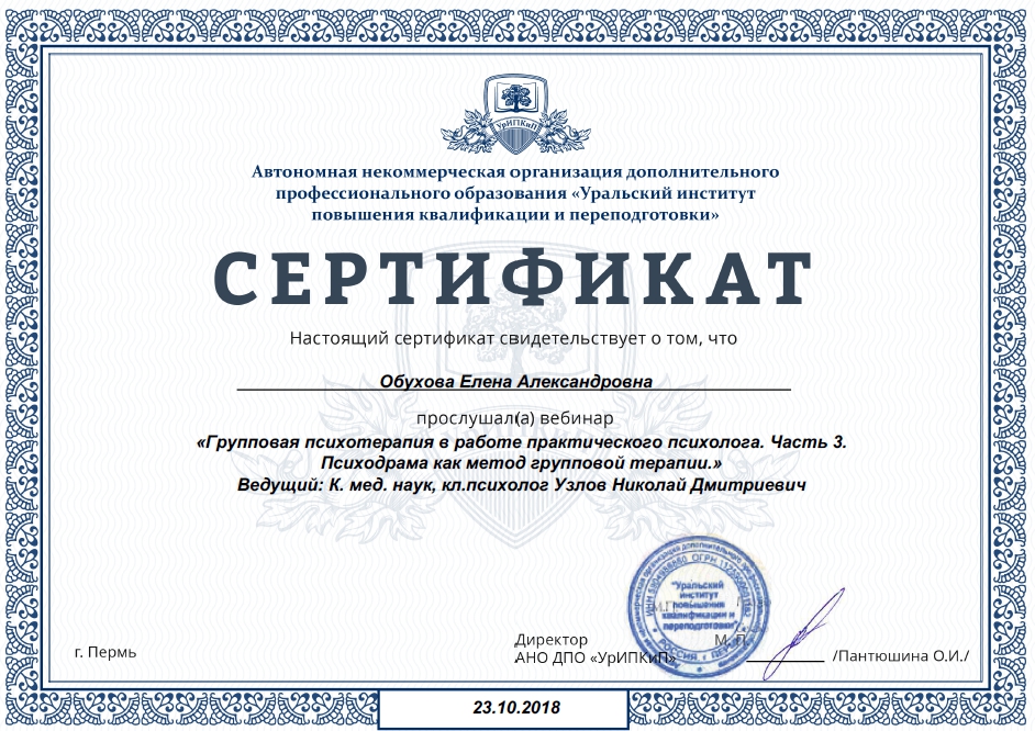 (моя учеба) сертификат: психодрама в групповой психотерапии