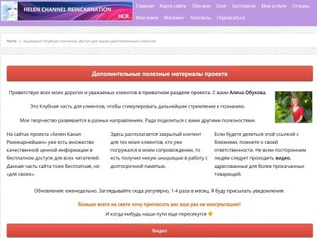 Создан Клубный закрытый раздел для клиентов платных сеансов. Давно вынашивала идею внутренней тусовки «посвященных». Страничка создана, действительные клиенты получат в дополнительной рассылке к ней пароль.
